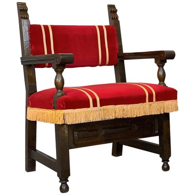 Spanish Armchair In Carved Walnut Red Velvet Upholstery For Sale At Pamono